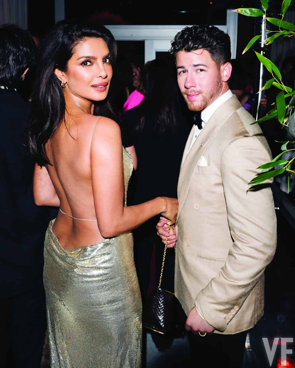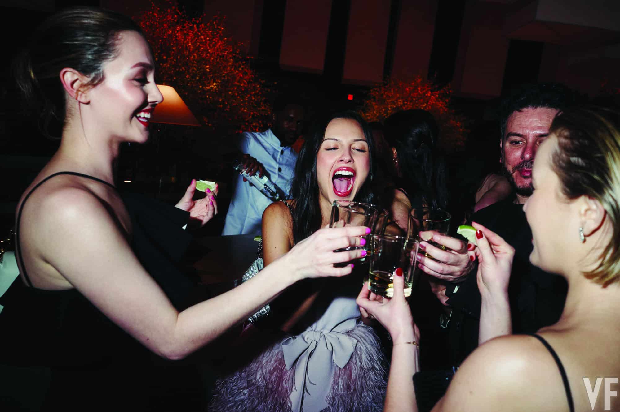 Passing through a portal built into the silver wall, guests walked through a passage of silver and illuminated bamboo walls and emerged onto the silver carpet where they posed for photographers in front of a 12-foot-tall, 100-foot-long wall featuring 6-foot-tall silver VANITY FAIR lettering against a stainless steel backdrop.
