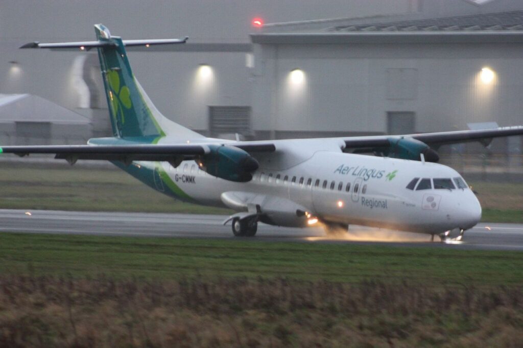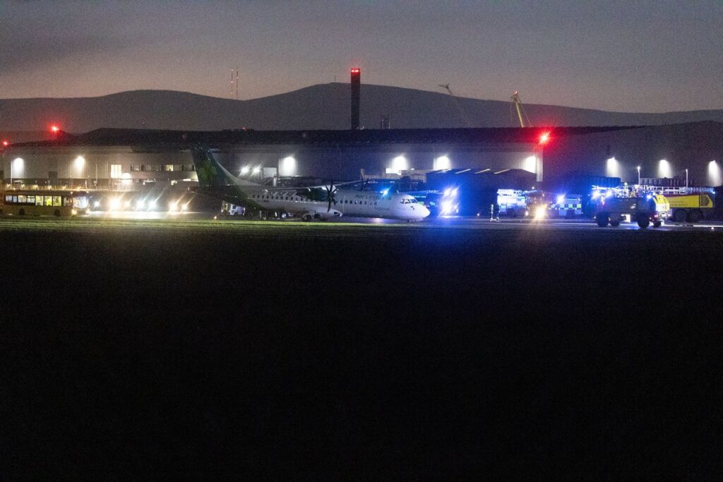 Pictures show sparks coming from the undercarriage of the Aer Lingus Regional ATR aircraft as it skidded down the runway at around 4pm on Sunday.