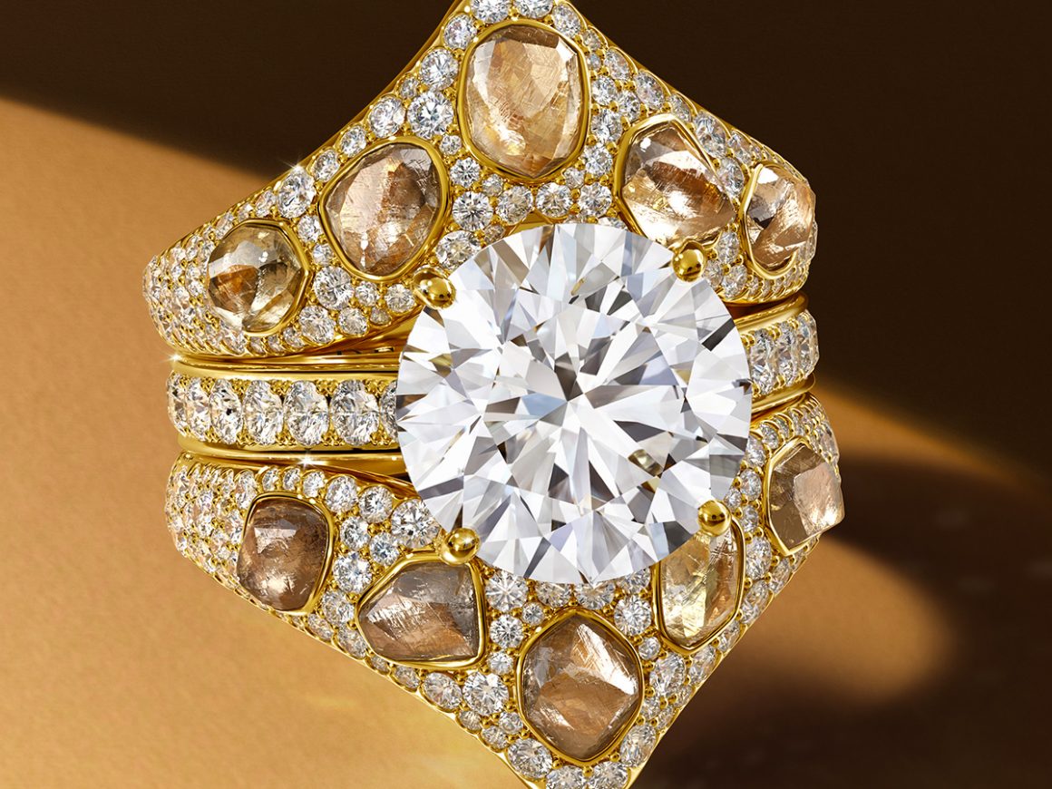 For Hermès, Pierre Hardy’s Shapes of Colour collection is an “eclectic and radiant odyssey,” in a powerful play of illusion that combines geometry with fluidity, roundness with line and polychrome explorations. Like an arc of colours, Hermès Diaprés, comprises a necklace set with 1400 stones in gradations along with sections titled Fresh Paint and Color Vibes that make up this bold symphony, associating a square with a ruby, the yellow of a beryl with a triangle, the blue of a sapphire with a circle. The brilliance is there, revisited by the House’s codes – like the anchor chain, the Birkin and Kelly bags, which have become veritable jewels set in stone.