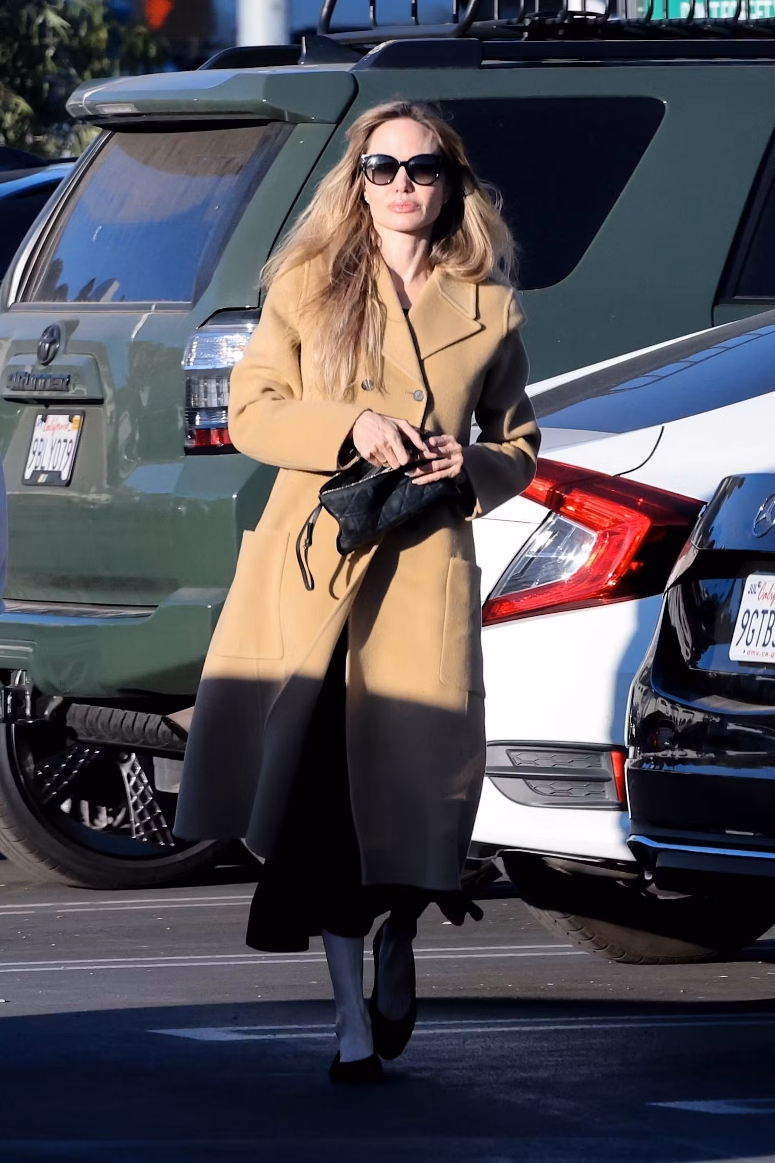 The Academy Awards. Angelina Jolie, one of this season’s most nominated actors, has kept a surprisingly low-profile lately — only stepping out for occasional grocery runs. Jolie was snapped by the paparazzi in a camel coat and ballet flats, which made up her latest effortlessly chic shopping set.