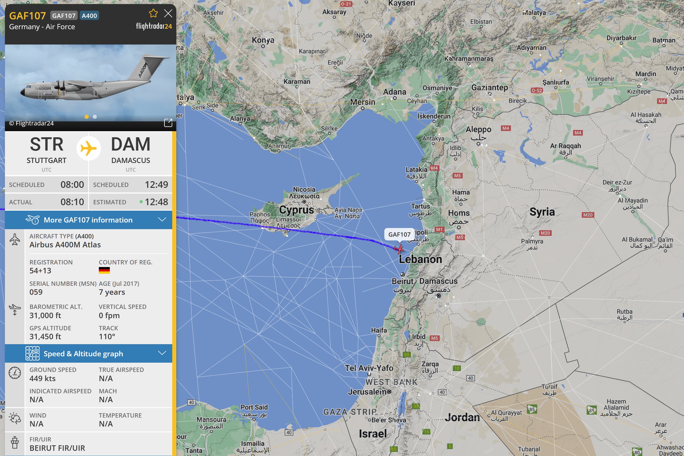 Foreign Minister Annalena Baerbock (right) stands in an Air Force A400M before departure to Damascus. © Jörg Blank