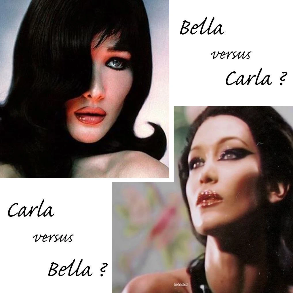 Bella Hadid posted a photo from one of her shoots and then a second one featuring Carla Bruni. Their resemblance is more uncanny than ever.