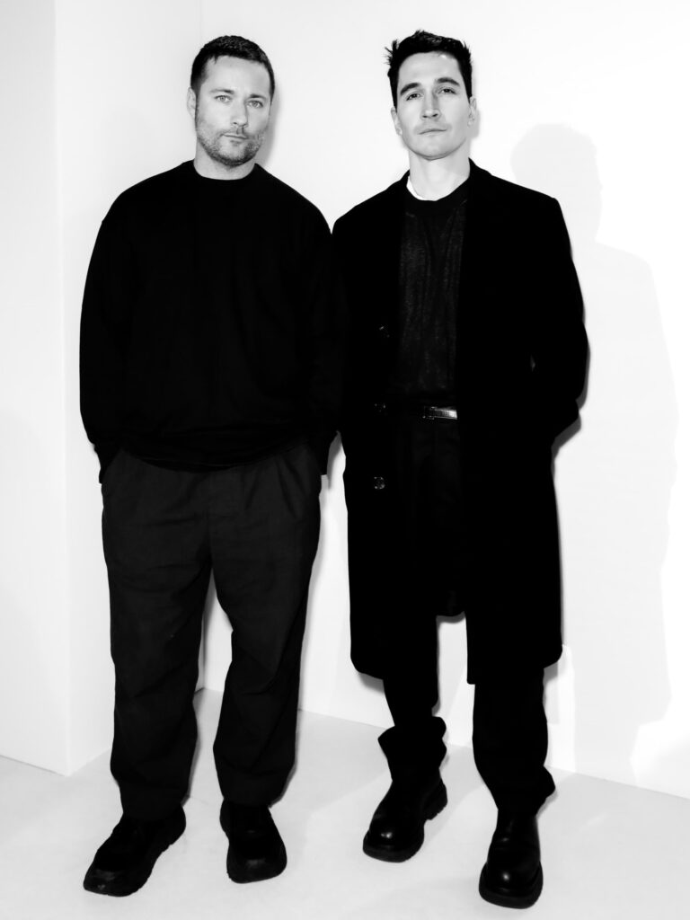 Inside the store, the installation extends the narrative through scenographic elements drawn from the original runway show, including dimensional blocks arranged in saturated tones. These are paired with key looks from the collection, creating a spatial experience that reflects the designers’ focus on structure, movement, and materiality.