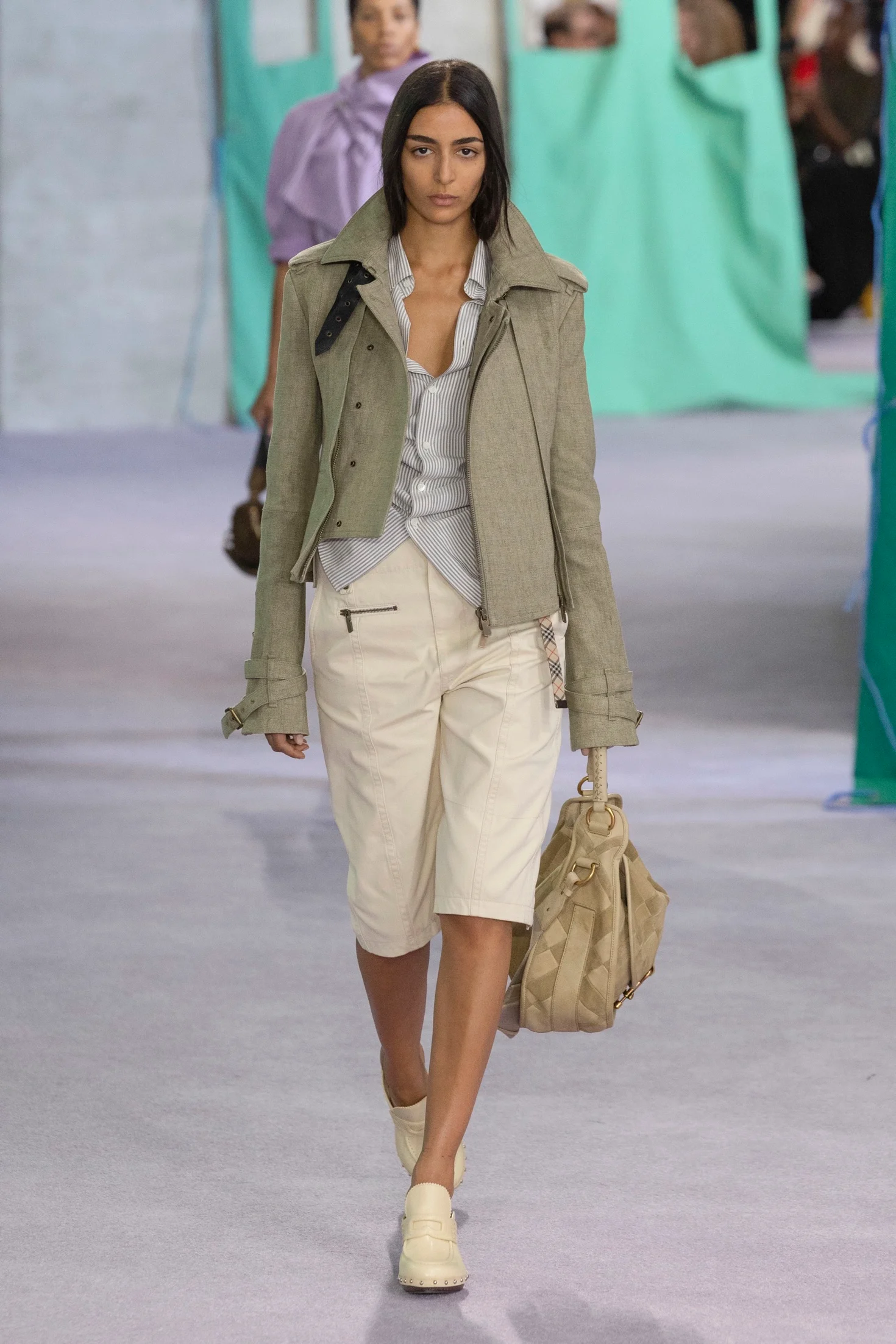 On the Burberry catwalk, we saw a functional style, ideal for walks, excursions and vacations, that was harmoniously combined with clogs and neutral basics.