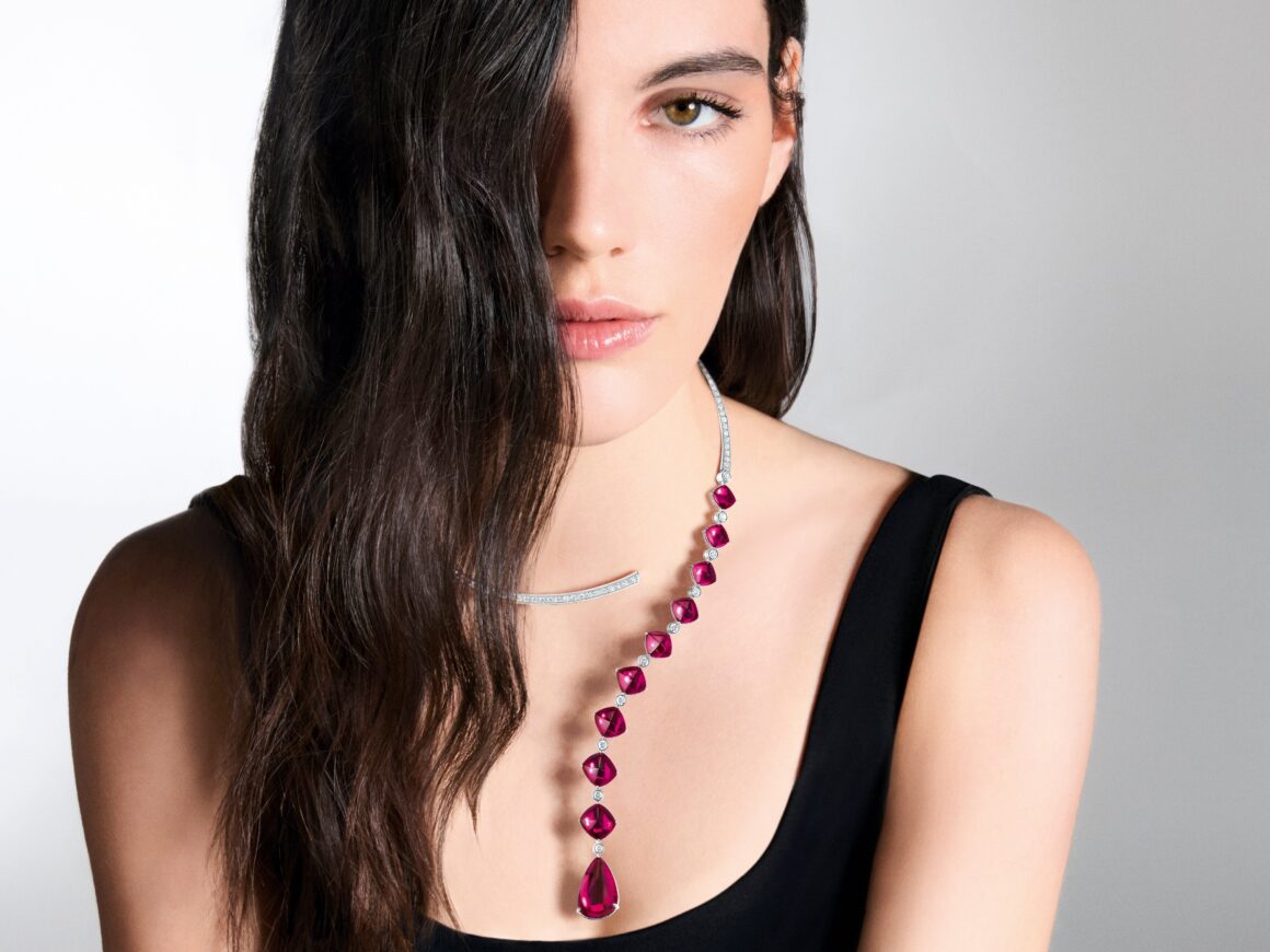 This year, Boucheron’s creative studio unveils new variants of this historic piece, with eight contemporary interpretations. The three models took silhouettes from archival pieces from 1884, commissioned by American tycoon Cornelius Vanderbilt . These pieces were further enhanced with a reversible design, which allowed the necklaces to be turned around to show another side with precious stones, such as red rubellites, blue tanzanites and green tourmalines. Also, with new variants, such as the Lierre de Paris, which recalls the original from 1881, Boucheron celebrates natural beauty by using emeralds, black rhodium-plated white gold, and the trembleur technique that allows the leaves on the necklace to vibrate as if driven by a light breeze.