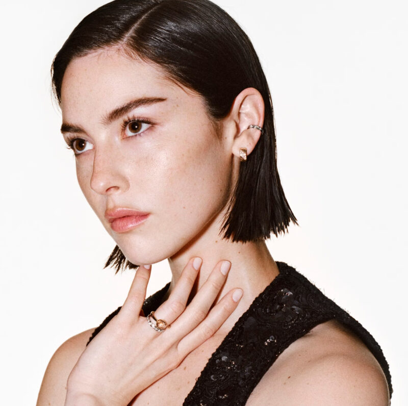 The singer, who is a frequent wearer of Chanel, embodies the jewelry’s playful energy in the “Hide and Seek” campaign alongside Mona Tougaard, Qun Ye, Mathilda Gvarliani, and Akon Changkou, directed by Gordon von Steiner. Abrams brings her own sense of youthful, California-cool personal style to the collection: “My favorite Chanel pieces are always the ones that I can imagine [paired] with my favorite jeans,” she George V Magazine.
