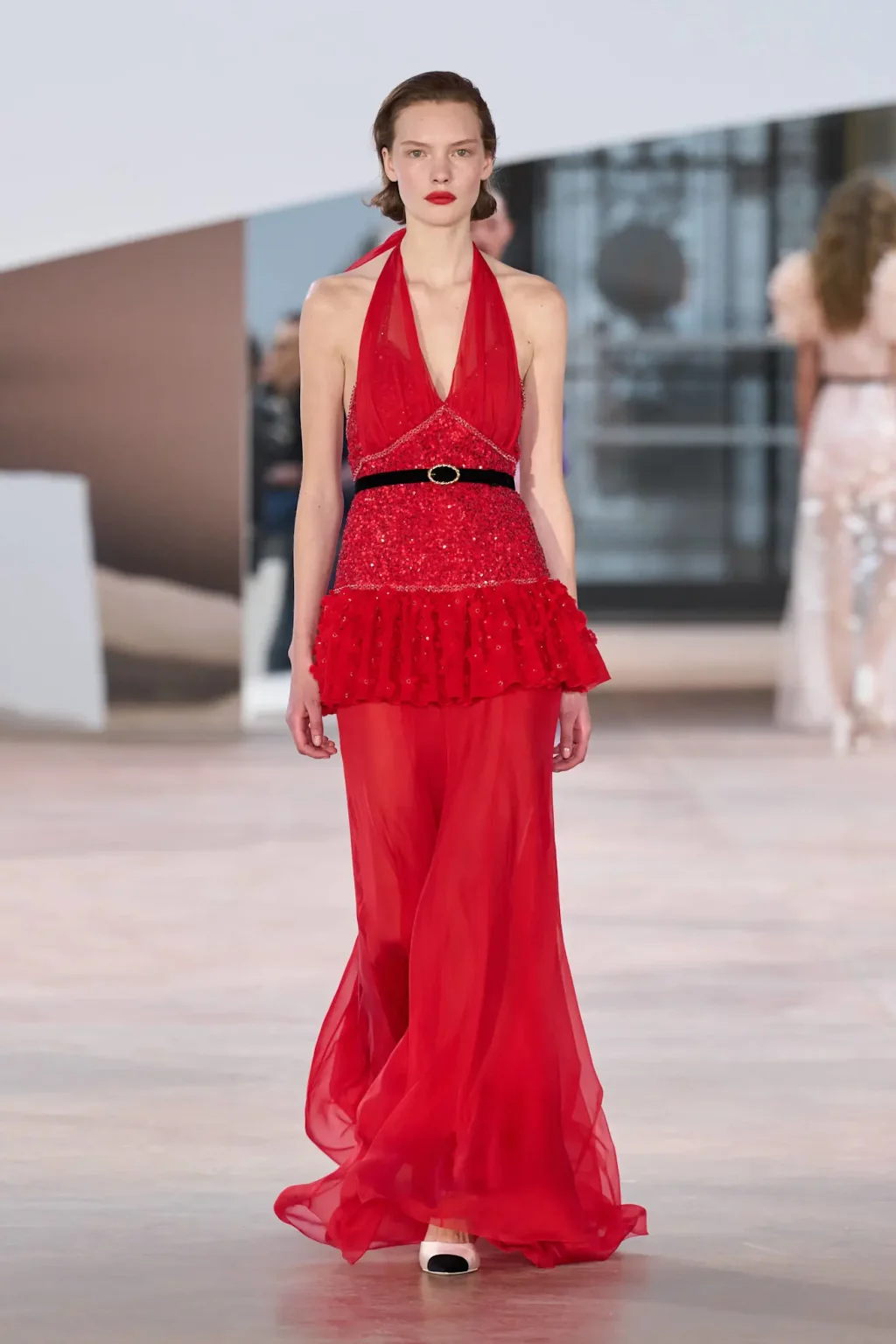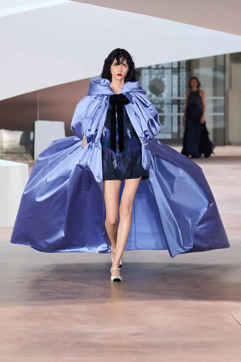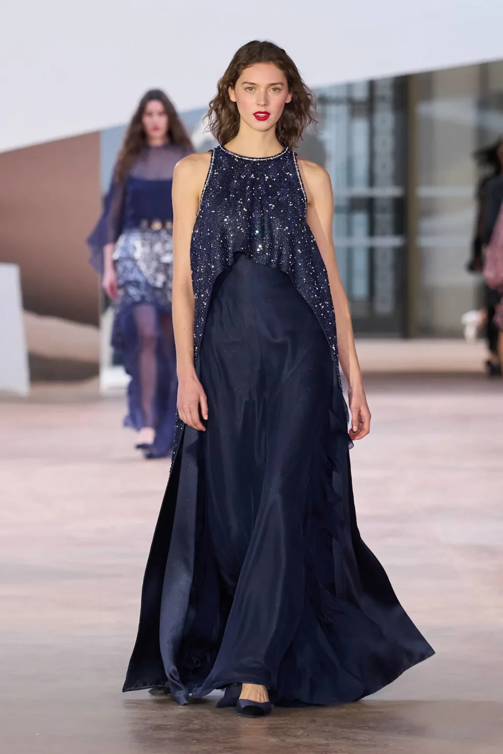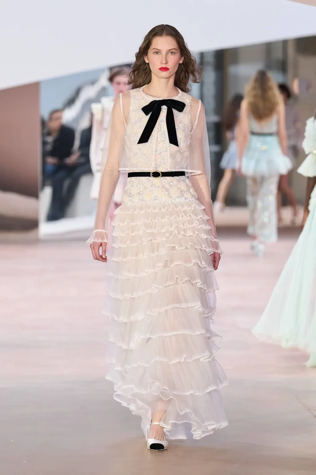Watching this collection, I feel as though we are witnessing a renaissance, a turning point in fashion—one that is more feminine, colorful, soft, and joyful. It echoes my recent article on Spring-Summer 2025 fashion trends and stands in striking contrast to the difficult geopolitical climate and the rather gloomy state of the global economy. And I must say—it feels like a breath of fresh air! Seeing luminous, radiant bursts of color is uplifting: deep midnight blues shimmering like the Milky Way, soft cottony whites with hints of pink or pristine purity, delicate lilacs, roses, and lavenders in full bloom, buttery pastel yellows, vibrant poppy reds, and even blacks softened by sheer layers and intricate lace.