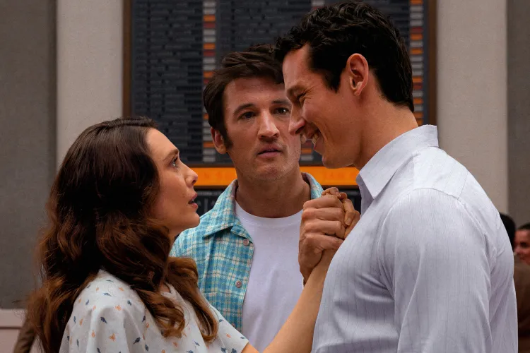 Before she can make that choice, though, she needs to decide which of her two husbands she’ll be living with — Larry Cutler (Miles Teller), her second husband who she raised a family with who died a week before her, or Luke (Callum Turner), her first husband who died in the Vietnam War and spent 67 years waiting in the Junction for her to show up.