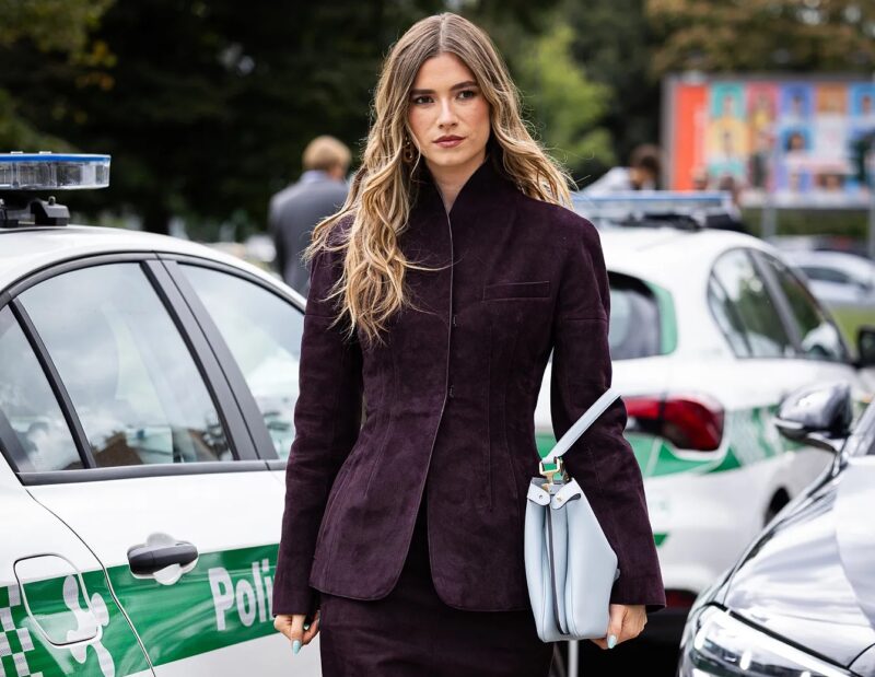According to Vogue critics the guest at Paris Fashion Week was dominated by Swedish and Spanish fashion trends who recreated viral looks from Miu Miu’s autumn-winter 2024/2025 show who also trend from Spanish fashion, in style and Swedish trends in colors. She offsets the sobriety of pairing a brown suede jacket and skirt with colourful tights. After all, fashion is also about experimenting and having fun.