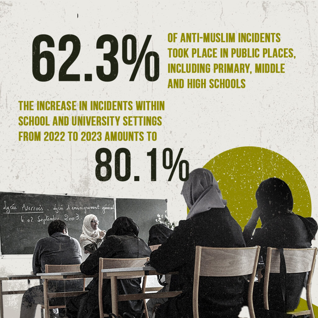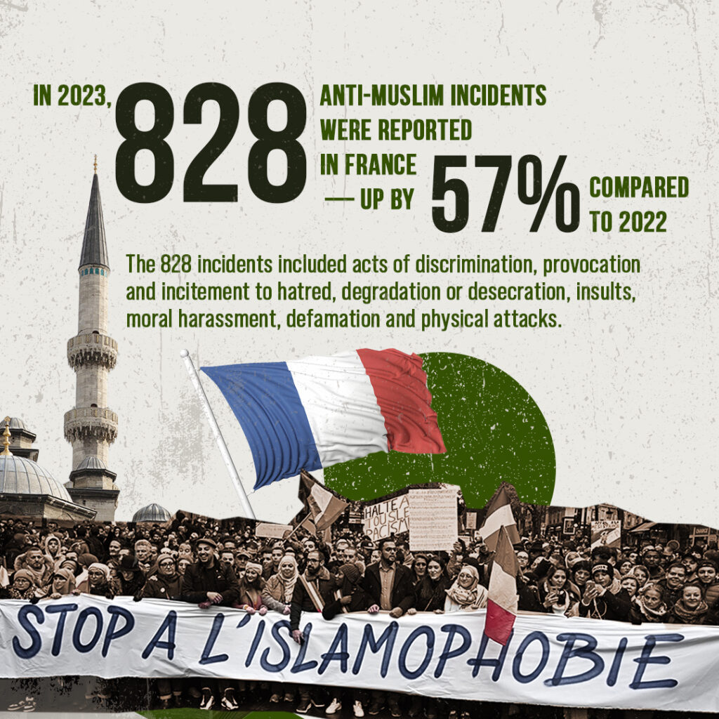 The report highlights the lack of solution-oriented policies for the Muslim community in France, where religious symbols, including headscarves, were banned in schools in 2004 and expanded in 2010 to include veils covering the face entirely in public spaces.