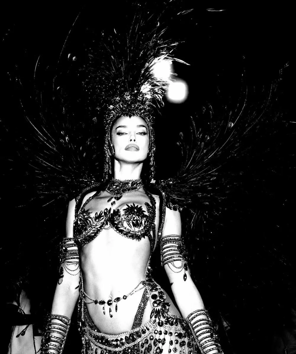 It can be said that the catwalk star outshone the Victoria’s Secret “angels” themselves with her carnival outfit.