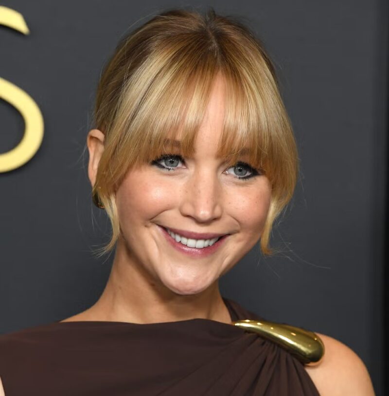 If you’re seeking party-season hair inspiration, we’ve found it. Lawrence debuted a tapered curtain fringe at the end of last month, freshly cut for the ATA Awards by her long-term hair stylist Gregory Russell, who created a beautifully subtle, elegant style for the actress at the Governors Awards. Teamed with a custom-made chocolate and gold Bottega Veneta gown, Lawrence’s low chignon and loosely tonged, face-framing layers bore all the hallmarks of a relaxed Roman goddess, enhanced by a smokey, feline flick of eyeliner by the make-up artist Georgie Eisdell.