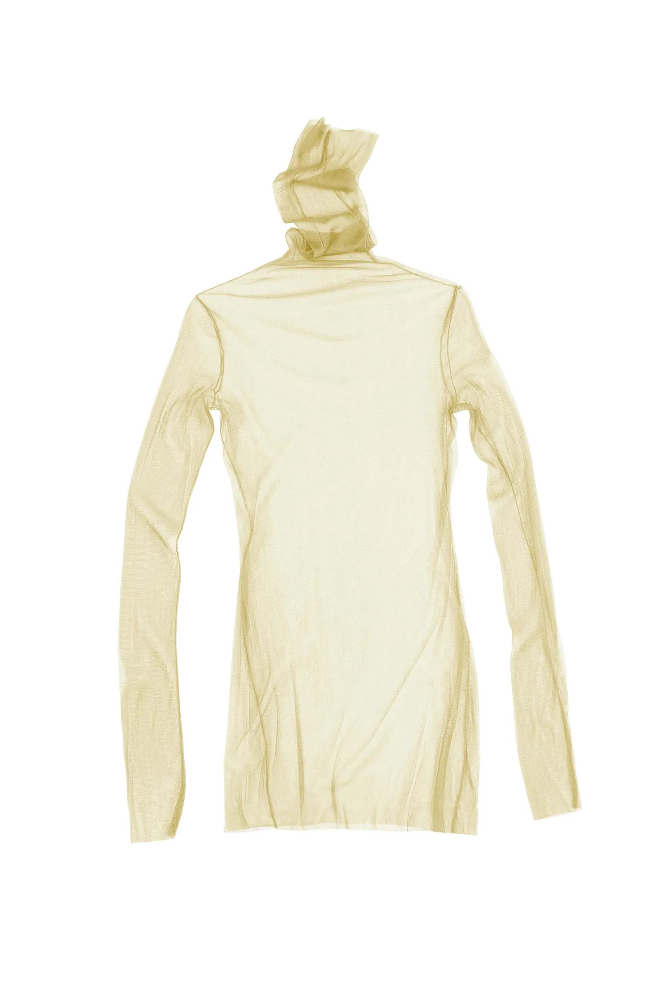 Tulle and silk top with a turtleneck and long sleeves , adaptable to the body, perfect for combining with sleeveless garments or to wear under others, creating a game of overlays, by Cortana (260 euros).