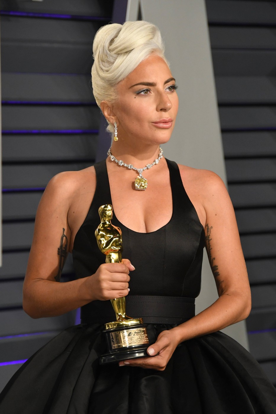 With the premiere of A Star is Born (2018), Lady Gaga finally embraced Hollywood glamor in its full glory, turning the red carpet into a place of pure spectacle. At the Oscars 2019, she appeared in a black Alexander McQueen dress, wearing the iconic Tiffany & Co. yellow diamond, which was a clear representation of her status as a modern movie diva. This jewelry, previously worn by Audrey Hepburn during the promotion of the movie Breakfast at Tiffany’s , was worn by Gaga with an expression of dignity and elegance that redefined her image in the eyes of the public.