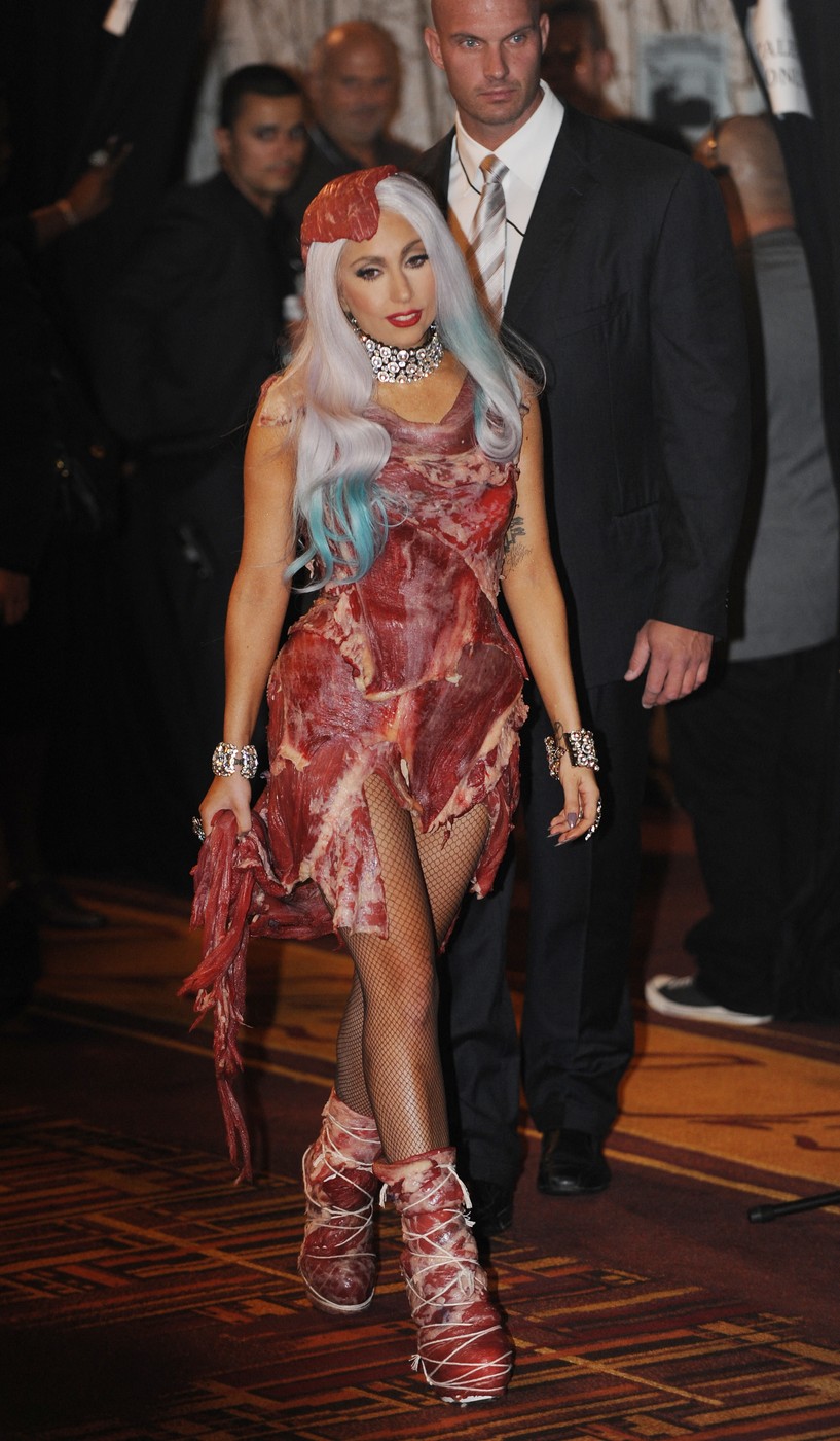 When Lady Gaga appeared at the 2010 MTV Video Music Awards in the famous “meat suit” (designed by Franz Fernandez), she didn’t just cause a sensation – she created a historic pop culture moment. The suit, made from raw pieces of meat, has provoked various reactions, from shock to admiration, and raised many questions about artistic freedom and social norms. Gaga claimed that the suit was an expression of her fight for the rights of the LGBT community, saying that she “must not be treated like a piece of meat”. This outfit became one of her most provocative releases and an iconic symbol of the rebellious avant-garde in the world of pop culture.