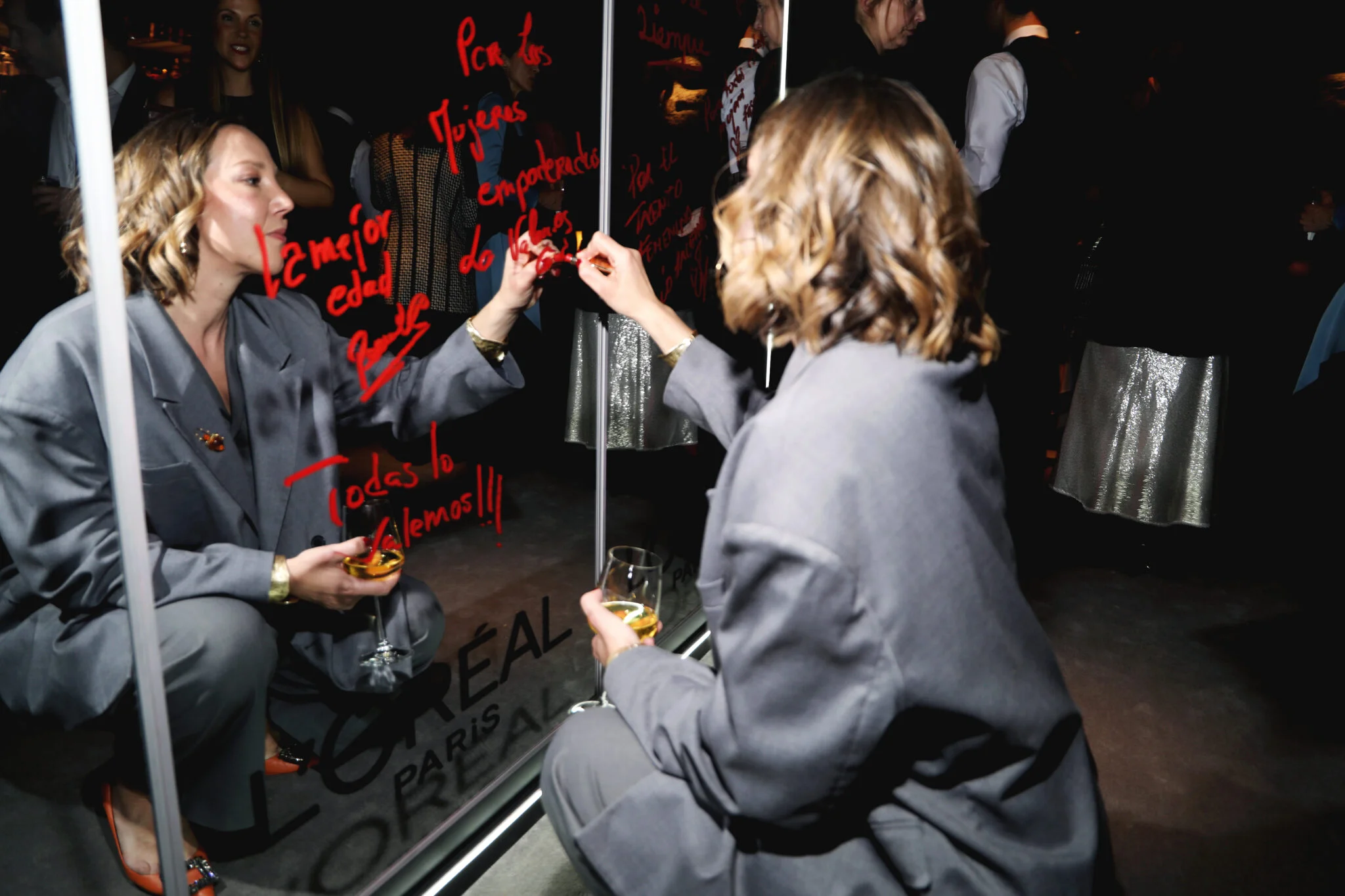 In one corner of Forbes House, a mirror invited pause. Not to observe, but to recognize oneself. Before it, an intimate gesture transformed into a collective act: a red lipstick—the absolute symbol of L’Oréal Paris—with which each woman inscribed a phrase, an idea, a truth. There was something profoundly powerful in that moment. It wasn’t a game. It was almost a ritual.