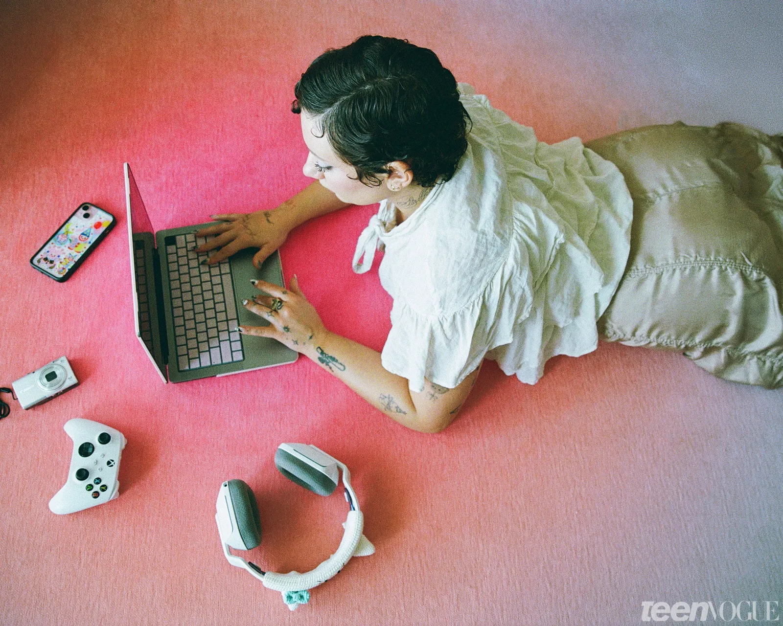Vanilla tells me she was a born entertainer. As a child in Connecticut, she begged her family to film her performing sketches or “sometimes just nonsense” on their camcorder. In high school, people would often tell her that she should consider doing standup. “I just loved to tell stories and make people laugh,” she tells Teen Vogue. “It’s just so funny that it was so apparent from a young age that I wanted to just talk in front of the camera.”