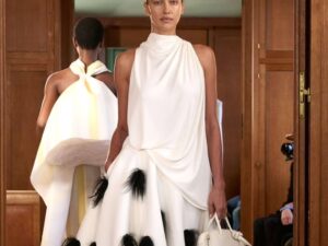 Lotta Volkova’s styling amplifies that duality: contrasting textures layered, sequin knits glimmer beside rough-hewn stone, loafers treading the same uneven floors that once bore heavy boots. It’s a world of deliberate imperfection, one where elegance flickers, fragile and alive, in the dim light of recollection.