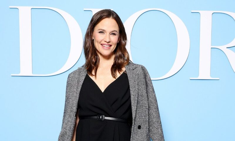 Jennifer Garner wore a Dior Pre Fall 2024 grey wool coat over a black wool dress. Photo / Dior