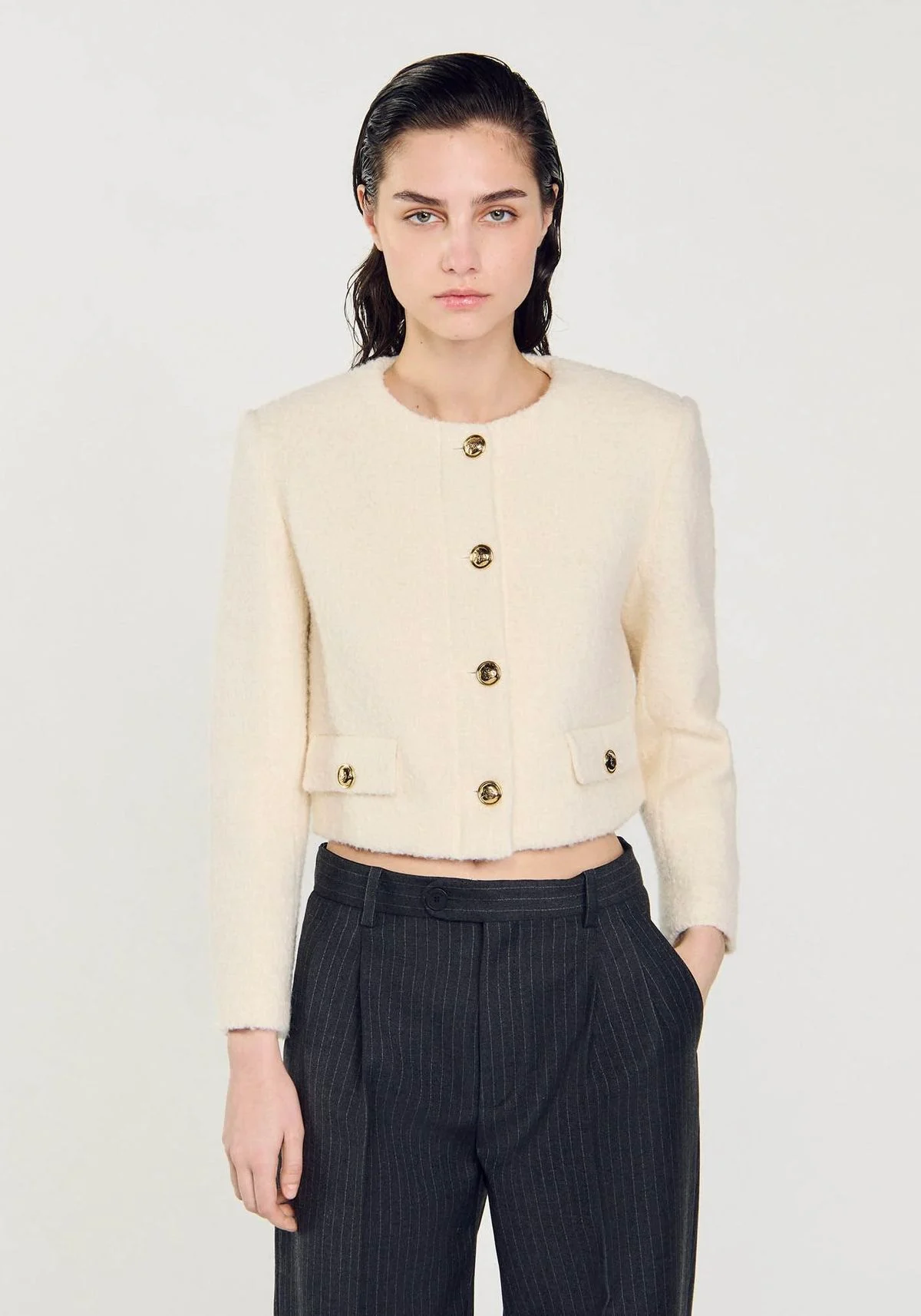 To ensure that the Sandro blazer doesn’t look too sophisticated and ladylike, the right styling is important. Since blazers and bouclé are naturally very elegant, they need