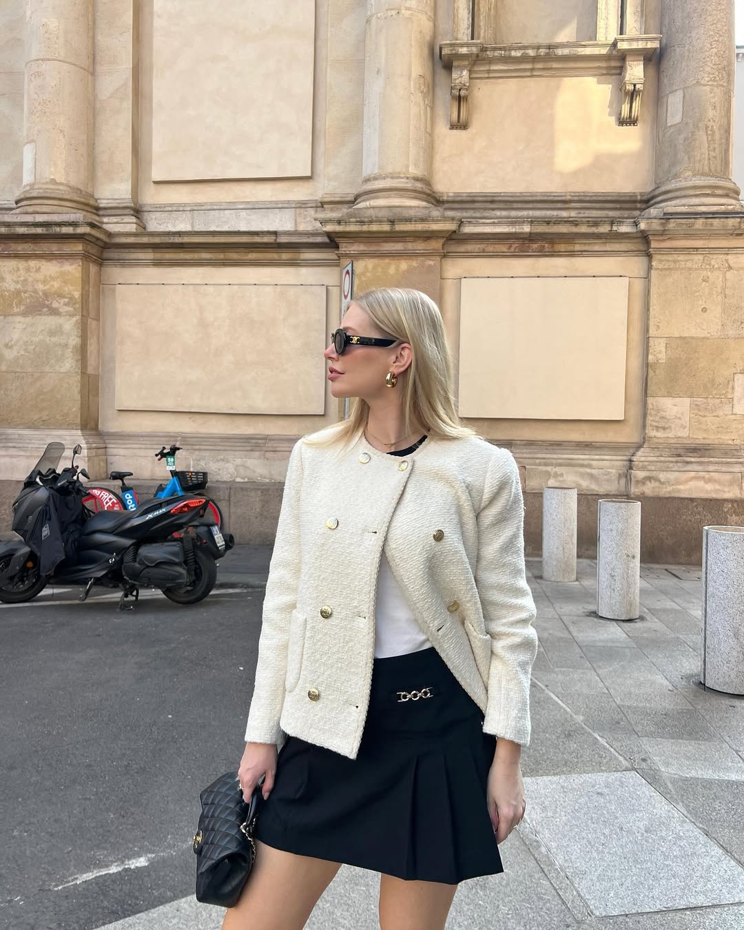Over the years, the jacket has been reinterpreted, rediscovered and reinvented time and again – with varying cuts and lengths, changed sleeves and always new colors and fabric structures. Today we enjoy this variety of designs of the lady-like jacket, which has the right model for every taste. No matter whether you prefer classic elegance, extravagant details or colorful, preppy or minimalist designs. If you are not yet convinced, the following styling tips will certainly inspire you to wear the elegant vintage jacket.