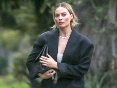 On a casual errand run in Santa Monica, the The Wolf of Wall Street, Suicide Squad and Barbie superstar wore a not so Wall Street style look that had an air of supermodel off-duty about it. She wore a white tank top with an oversized grey blazer thrown over the top, blue boot-cut jeans and a black leather pair of Bottega Veneta mules while embracing the Jorge’s blazer and supersized model bag.