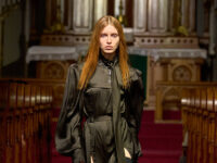 Accessories play an equally important role in shaping the collection’s world. Saint Laurent Rive Droite reunites with Swiss ski manufacturer ZAI for a third collaboration, unveiling three exclusive pairs of skis that prioritize performance without sacrificing design. Built using ZAI’s precision system, the skis are engineered for speed, balance, and control, underscoring the collection’s balance of form and function. The offering extends beyond the slopes with statement winter objects including a black wooden sledge, an Eretic snowscoot, and black Salomon helmets that feel more collectible than utilitarian.
