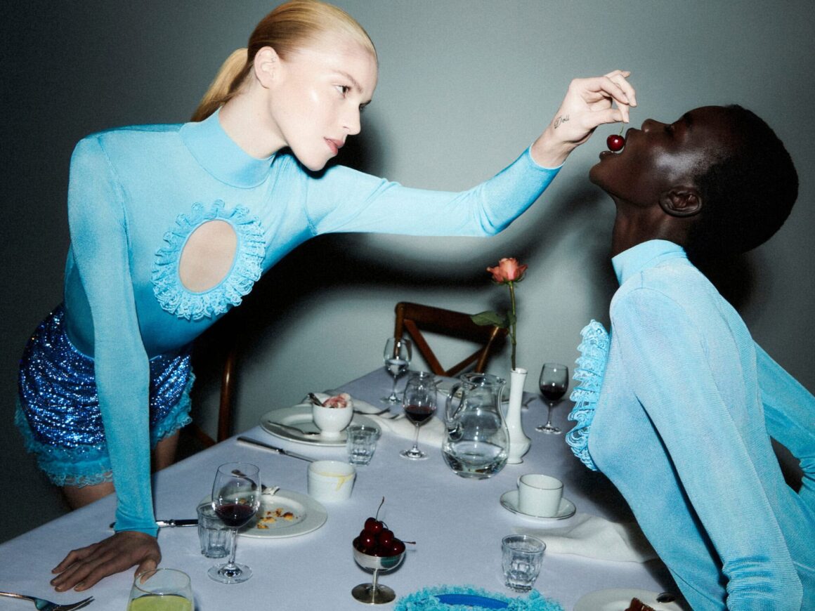 Self-Portrait and Christopher Kane celebrate their unique collaboration with an even more unique campaign. The live shoot took place during an event hosted by the co-creative directors, where guests at the 100 person dinner were fully immersed into the shoot setting. Along with models like Achol Ayor and Colin Jones, insiders from fashion’s old guard like Suzy Menkes and Carine Roitfeld mingled with influencers like Bryanboy.
