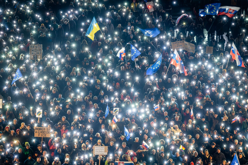 Demonstrations took place in the capital Bratislava, but also in Banska Bystrica, Nitra, Zilina, Kosice and some smaller towns such as Nove Zamky, Prievidza and Humenne. Marches were also organized by Slovaks abroad, including in Poland, Germany, the Czech Republic and Ireland. In Bratislava and elsewhere, crowds called for the prime minister’s resignation and chanted slogans including “Enough with Fico” and “We will not be silent”.