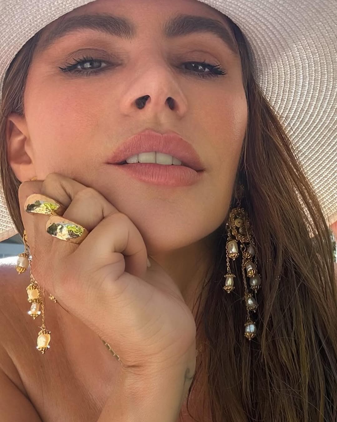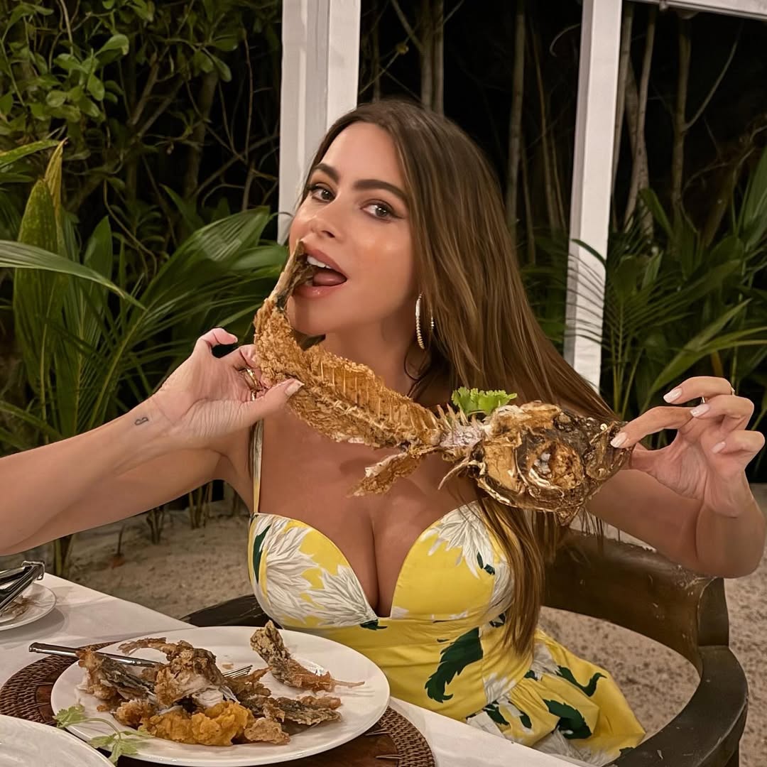 In another picture, Vergara, in a long blue dress with peacock motifs, and a younger family member could be seen eating empanadas. She showed a plate full of the tasty treats with some salsa sauce next to it as she smiled up at the camera.