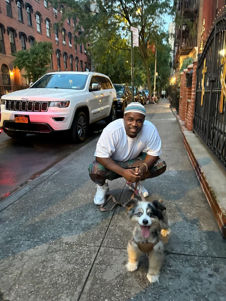 Call this statement cliché, but the story of Ferg and his beloved dog, KrasH, sounds like a movie. Back in 2020, the rapper and entrepreneur gifted his then girlfriend, director photographer Renell Medrano, a puppy. The Australian shepherd ended up spending a lot of time at Ferg’s house in New Jersey. “You know how it is—you don’t live with each other, but y’all basically live with each other, so the dog was my dog as well,” Ferg tells George V Magazine in a interview over the phone with Ferg of the canine co-parenting situation.