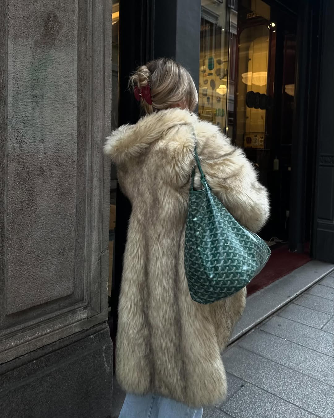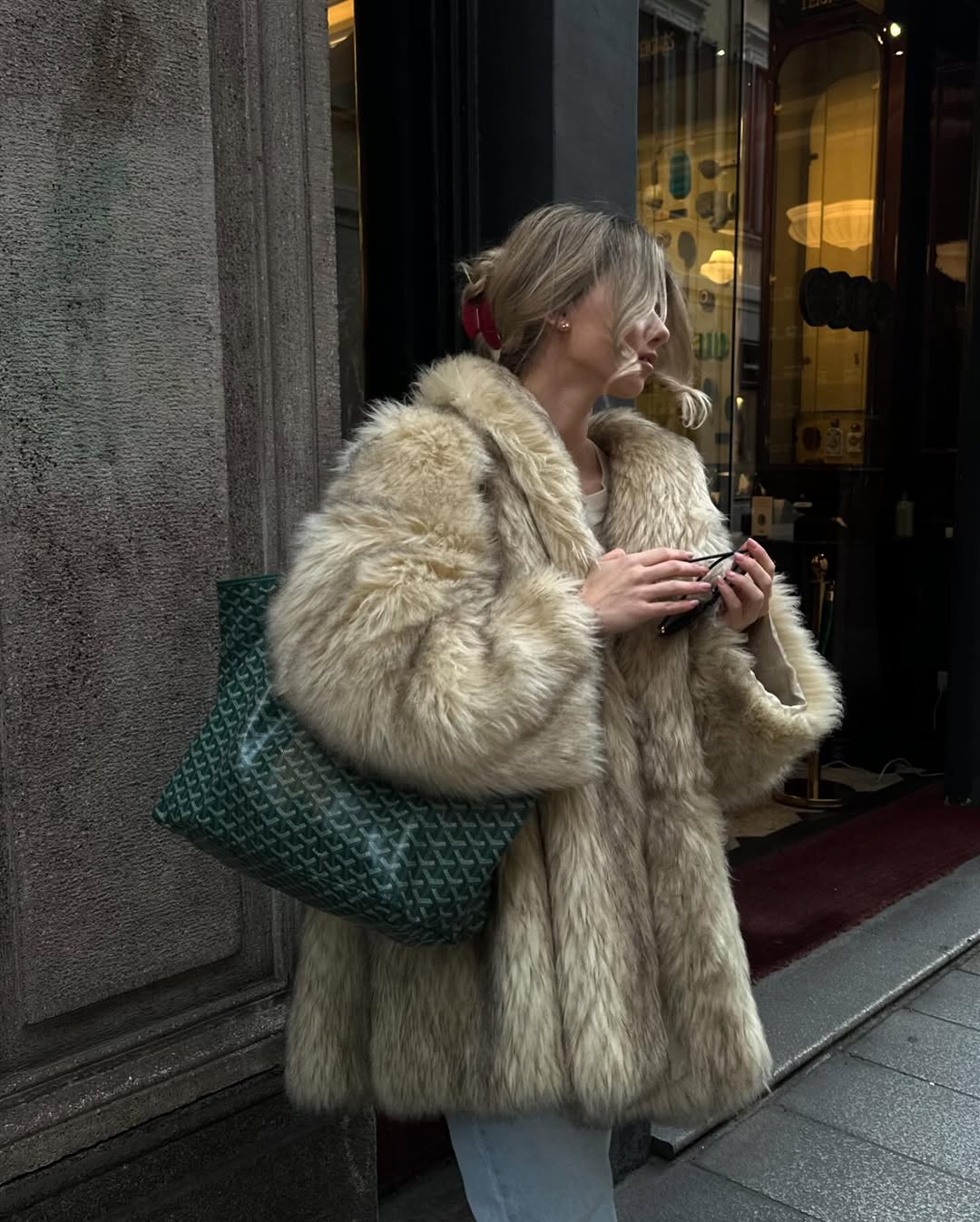 In terms of color, you can choose between models in a delicate beige for a light look, elegant chocolate brown or a deep dark black. But patterns are also popular, so the leopard trend that we have seen all year long is continuing into, with the print adorning faux für jackets. In the streets of Milan, it was increasingly the dark brown models that were on the move, especially the long and pompous version. But short versions are also popular and perhaps a good choice for anyone who wants to slowly get used to the für look.