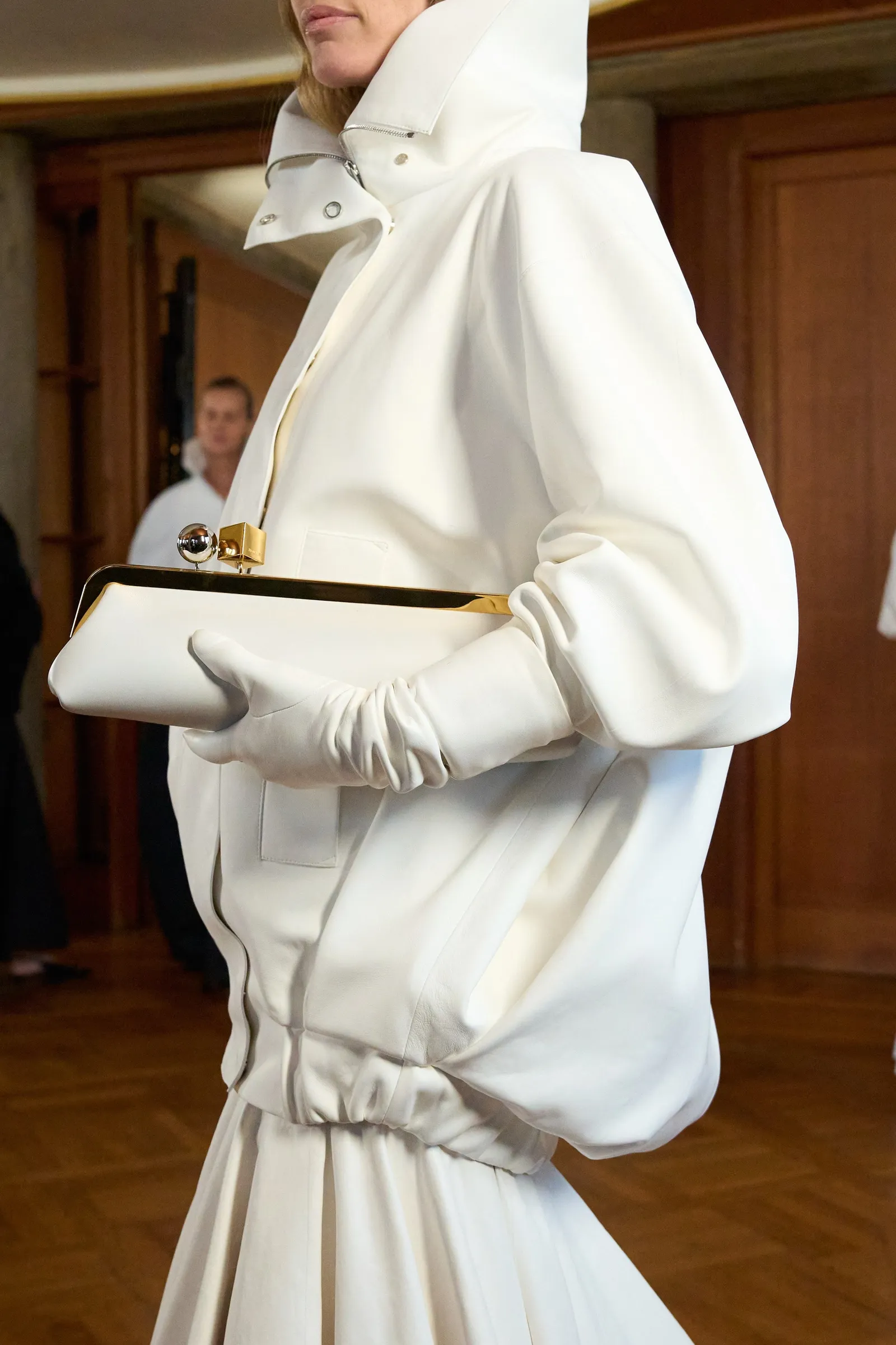 While it’s customary to want to maximize your legwork when putting together your look, this trend reshuffles the cards and instead elongates the upper body. Seen at the Jacquemus Spring/Summer 2025 show, worn by Doutzen Kroes, the drop-waisted jacket was imagined in dramatic volumes and contrasted with a very preppy skirt.