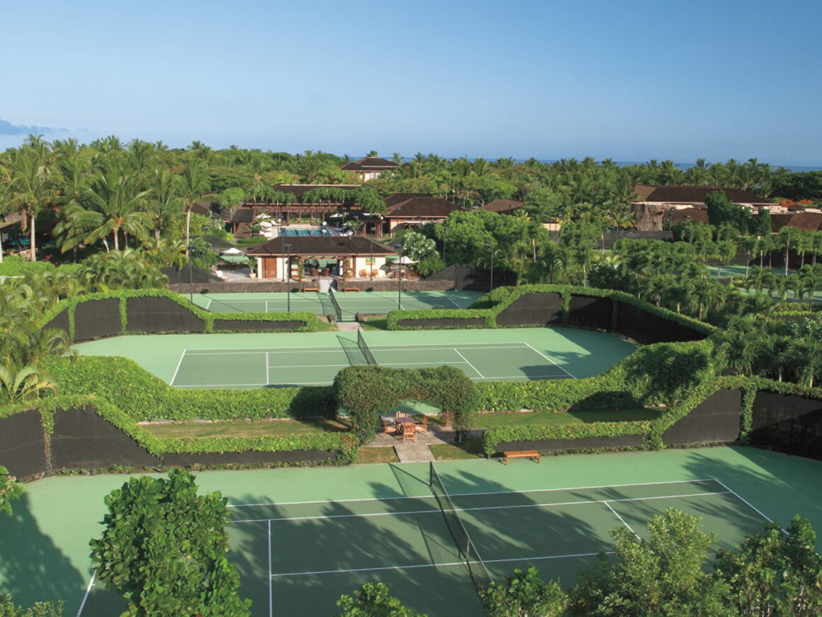 Four Seasons Resort Hualalai on the Big Island of Hawaii earns its reputation every time. The Tennis Club features six plexi-cushion championship courts — four lighted for evening play — alongside a fully staffed Tennis Pavilion with USPTA-certified professionals, ball machines, racket rentals, and a well-stocked pro shop. The resort’s Tennis Director runs clinics and match-play round robins for guests at every level. Between sessions, King’s Pond — a natural lava-rock pool teeming with tropical fish, carved directly into the coastline — is reason enough to extend the stay.