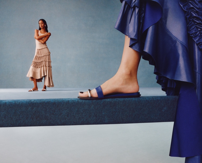 The space where the campaign was shot, with sharp architectural lines and subtle color contrasts, reflects the minimalism that runs through the entire collection. This ambience gives a special tone to the pieces, which are both simple and refined. Stylist Brian Molloy creates looks that can easily be worn from morning to night, combining soft sweaters, sculptural blazers and martial arts-inspired jackets with fluid pants and elegant skirts, providing a variety of options for everyday life.