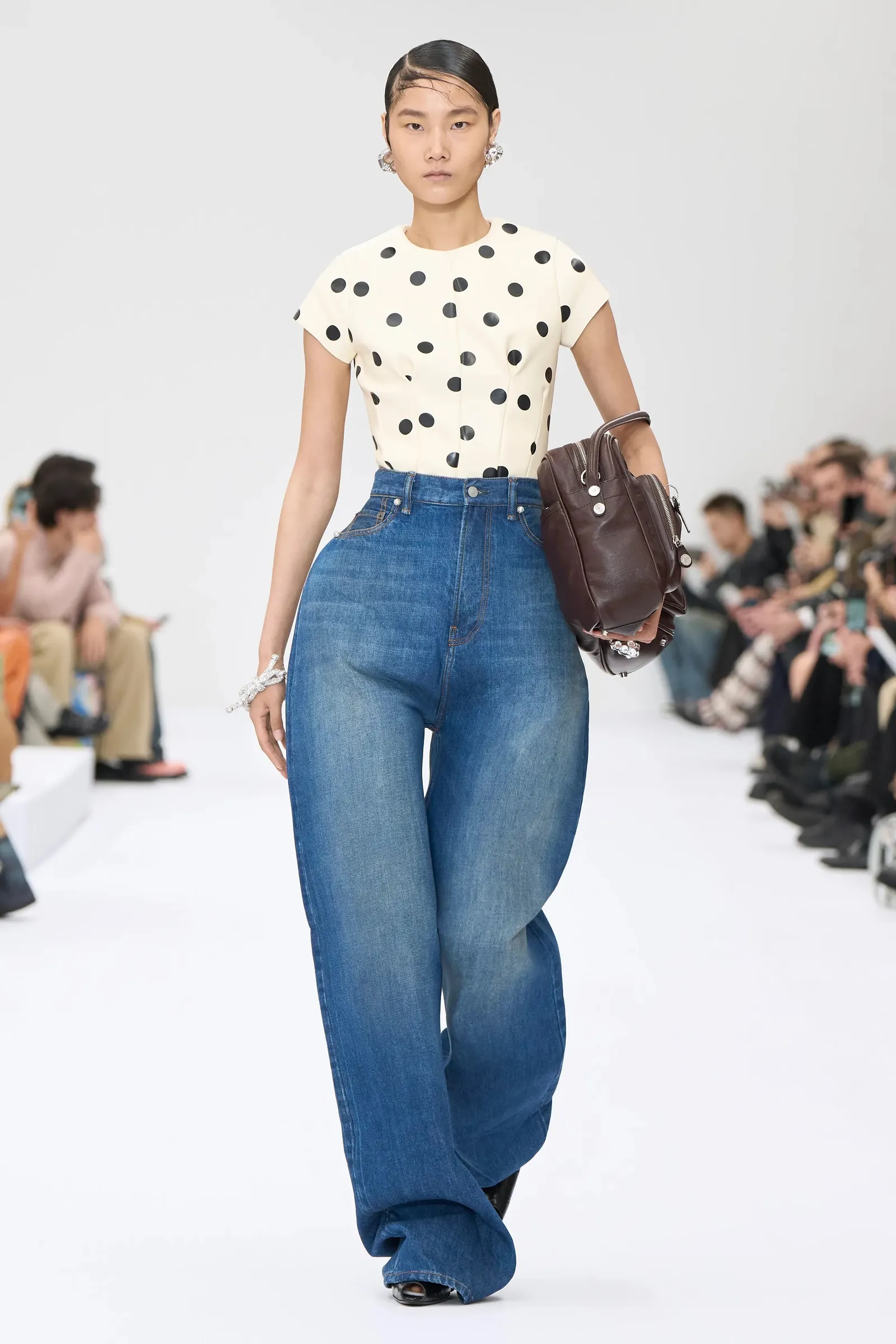 This is probably the most divisive denim trend. Barrel jeans, as the name suggests, replicate the curves of a barrel’s rounded cylinder. A statement style already adopted by Tina Kunakey, and reinterpreted on the catwalk of the Acne Studios Spring/Summer 2025 fashion show.